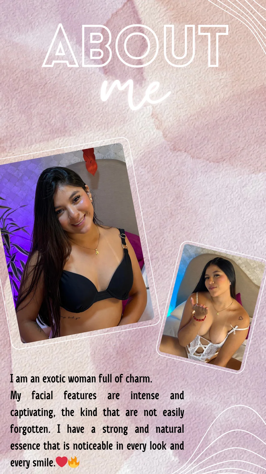 I intensely enjoy new experiences, I consider myself open, curious and willing to explore what life offers me. I like to discover myself little by little, without rushing, connecting with my deepest desires and leaving space for my most intimate fantasies. I believe in living with intensity, in feeling without fear and in enjoying every moment with authenticity ✨